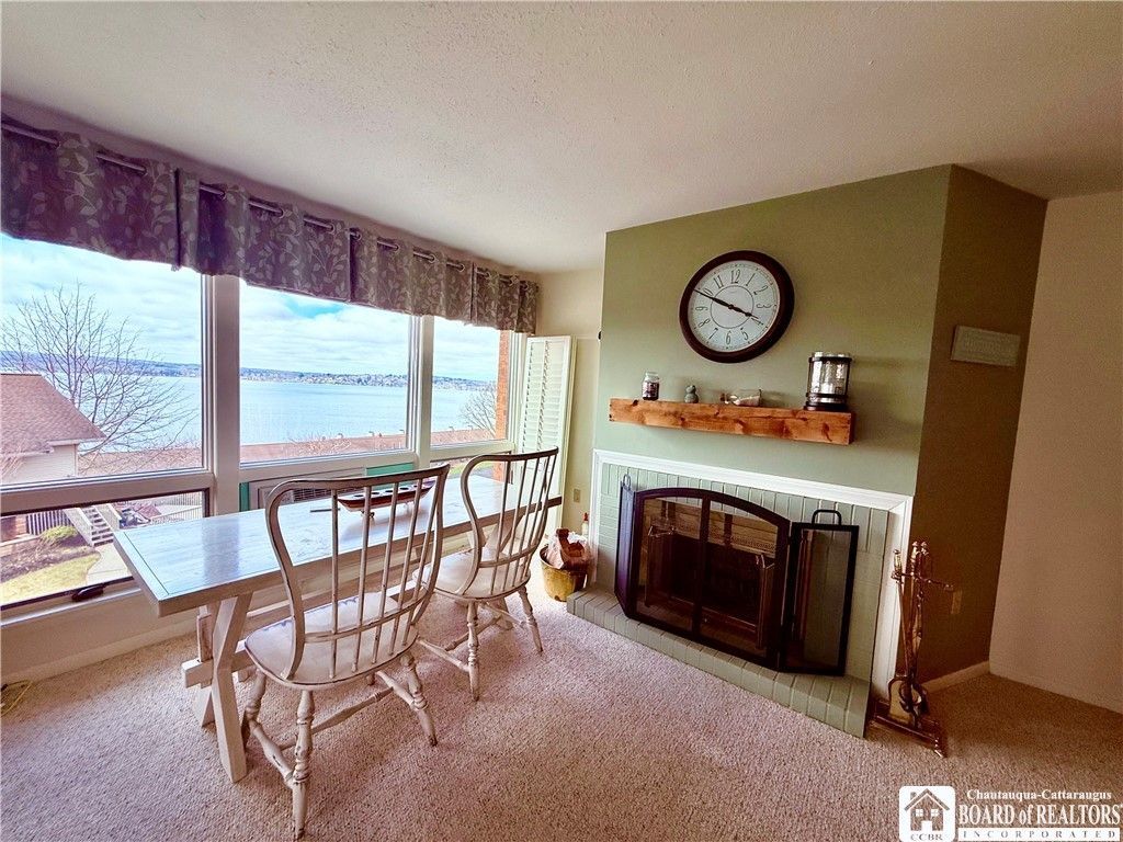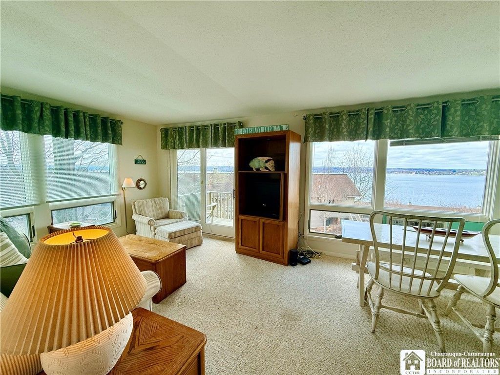 Welcome to this charming one-bedroom condo in the immaculate Chautauqua Lake Estates. It perfectly blends comfort, style, and serene lakefront living. Thoughtfully and adorably decorated, this inviting space offers a warm and modern aesthetic that immediately feels like home. Every window captures picturesque views of the lake, filling the condo with natural light and a peaceful ambiance throughout the day or sit outside on the balcony with a good book and glass of wine. The cozy living area is anchored by a beautiful fireplace, creating the perfect setting to relax and unwind. A modern, updated bathroom adds a touch of luxury, while the convenience of in-unit laundry enhances everyday living. Ideally located just minutes from Bemus Point and Chautauqua Institution, this property offers easy access to charming shops, dining, and year-round activities, while still being close to everyday shopping and conveniences. Beyond the condo itself, residents enjoy access to exceptional amenities including a sparkling pool and well-maintained tennis courts, offering both relaxation and recreation just steps from your door. Whether you're looking for a year-round residence or a tranquil getaway, this condo with a spectacular lake view delivers effortless living in a truly special setting.